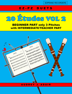 note-reading, ear-training, warming-up, and for practicing. These 'study' duets showcase novice players who have mastered three easy pitches. The music is all in