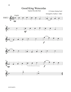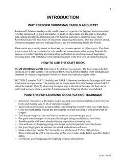 These traditional carols provide beloved concert repertoire for the holiday season. They are ideal for church, Christmas programs, concerts, madrigal dinners, and for entertaining. The duets are in easy keys with simple notation and two-part harmonies, suited for beginning and intermediate recorder players or for pupil and teacher.
