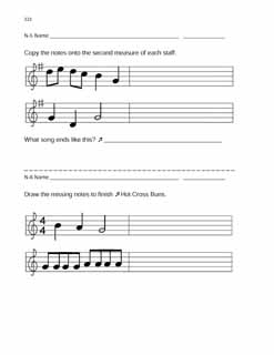 The two exercises are divided by dashes in the center of the page to easily fold or cut in half. While one activity is used as a follow-up to the music lesson, the other could be used for students who finish first, for extra credit, for homework, or as an activity for another class period. Most are also ideal for any general music class and when a substitute must take over.